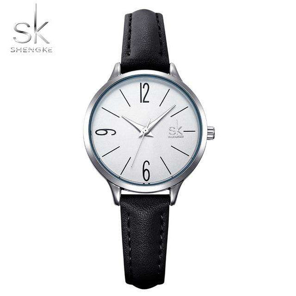 Shengke Fashion Watch Women Casual Leather Quartz Watch Round Wrist Watch Women Blue Band Watch Relogio Feminino Reloj Mujer
