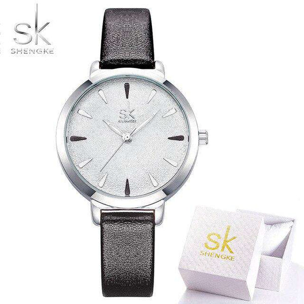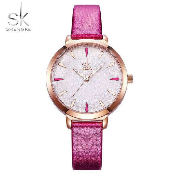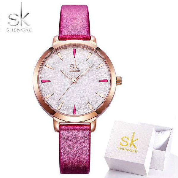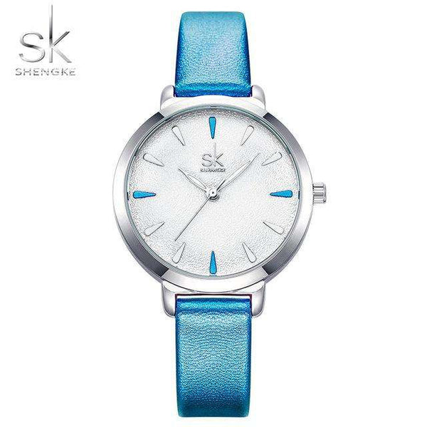 Shengke New Blue Leather Strap Women Colorful Watches Quartz Ladies Watch Simple Casual Dial Cheap Price Light Relogio Feminino